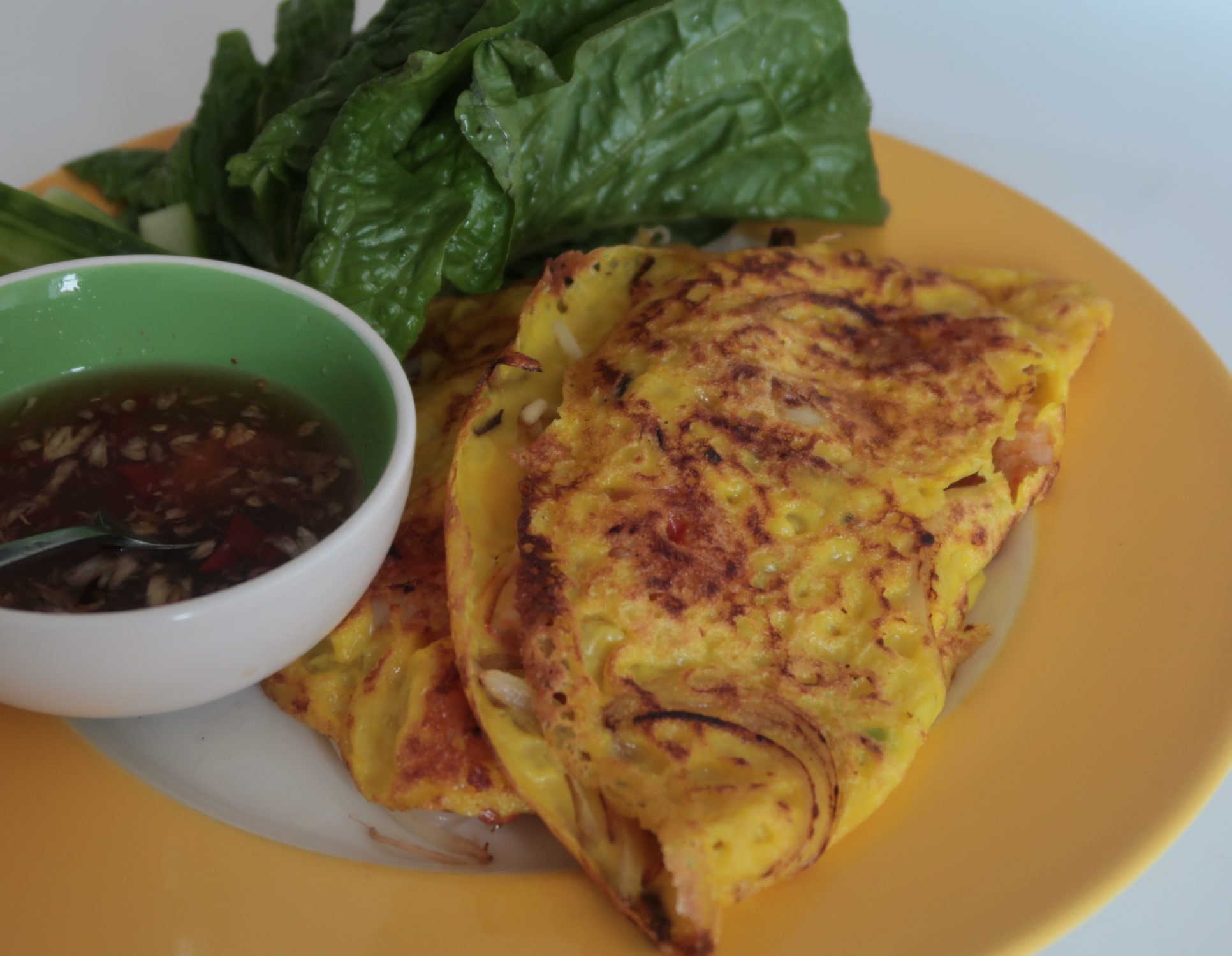 Ik noem dit gerecht Asian pancakes omdat dit een repro is van de Vietnamese pancake ( Báhn Xèo). Dit gerecht wordt in Azië(Thailand, Vietnam, Cambodja) als street food gegeten. In Rotterdam heb je een aantal leuke Vietnamese restaurants met ieder hun eigen huis specialiteiten. Voor de lekkerste Vietnamese pancakes is ViVu bij de Witte Withstraat een aanrader. Voor de heerlijke Homemade Lemongrass tea, is Little V een leuke en gezellige tent om in de zomer Ice tea te drinken.