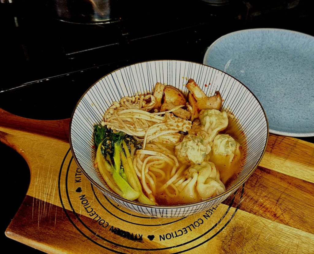 Deze pittige en hartige noedelsoep is perfect voor liefhebbers van kruidige smaken en umami.